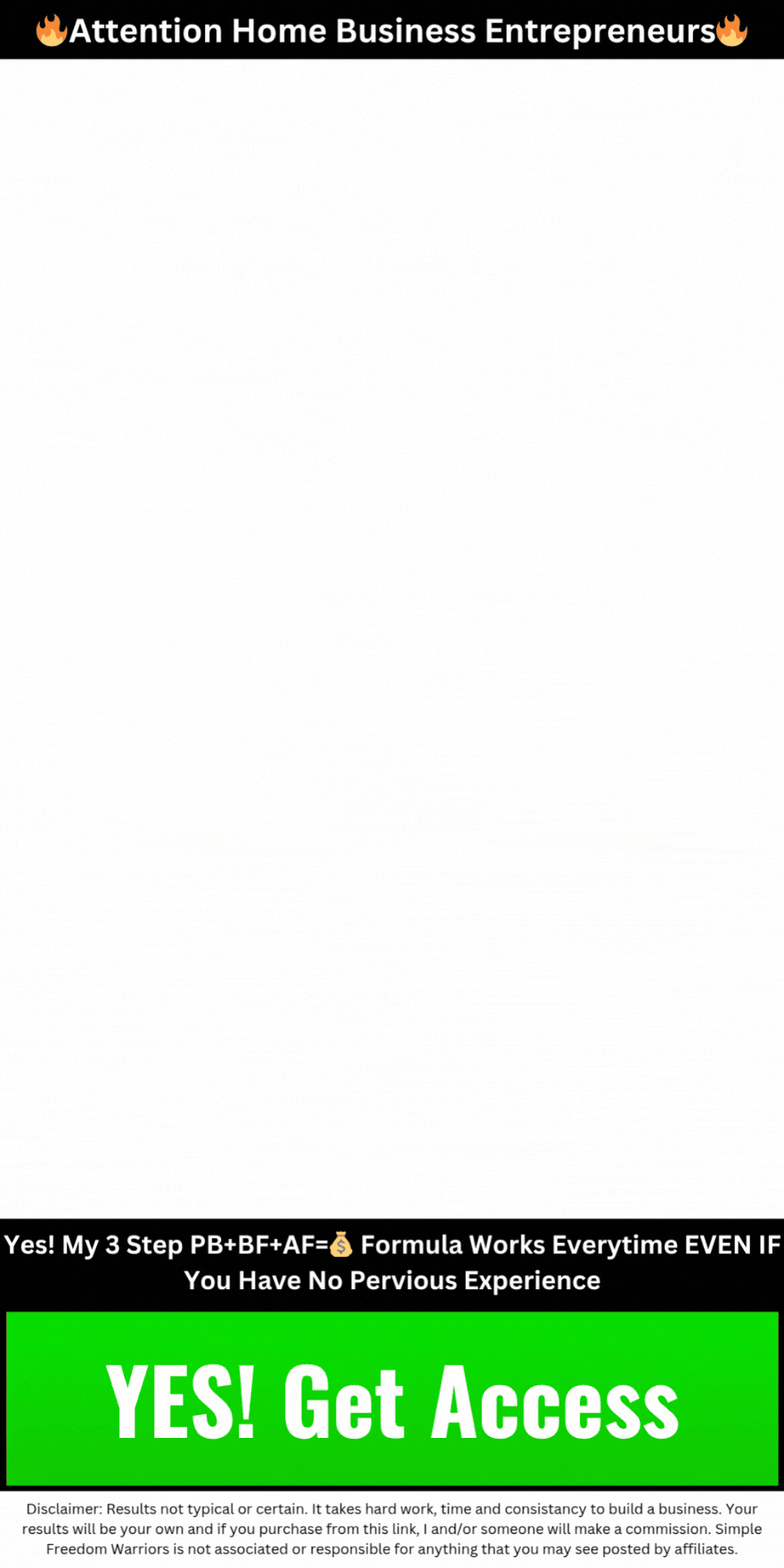 Disclaimer: Results not typical or certain. It takes hard work, time and consistency to build a business. Your results will be your own and if you purchase from this link, I and/or someone will make a commission. Simple Freedom Warriors is not associated or responsible for anything that you may see posted by affiliates on any platform. Any income proof or earnings are not a reflection of your potential income or earnings. The average affilaite makes $0 in their business due to lack of intelligence, skill, determination and application. Most people will make nothing. Expect no results. Expect to work hard.